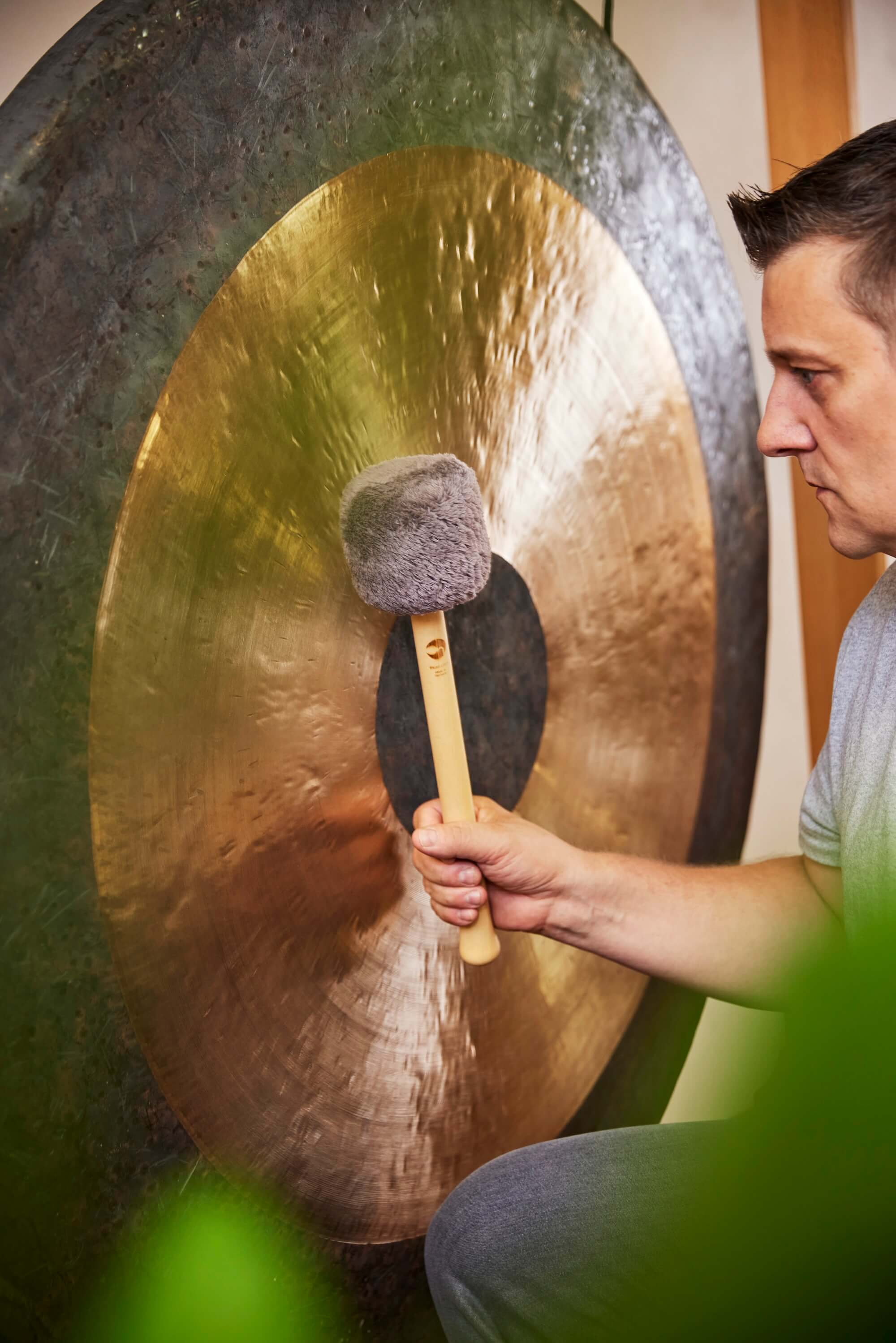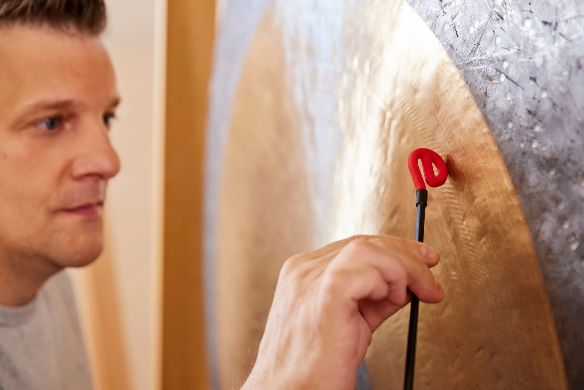 In der Peter Hess Klangmassage entdeckte Olli seine Begeisterung für Gongs - und den Wunsch, Klangwerkzeuge zu entwickeln. Als Olli merkte, dass herkömmliche Mallets den Klang nicht voll zur Geltung bringen, begann er zu experimentieren. Mit einer Drechselbank, unzähligen Tests und viel Geduld fand er schließlich die perfekte Kombination für einen Mallet: Naturkautschuk als Kern, Oekotex Wellnessfleece als Mantel.