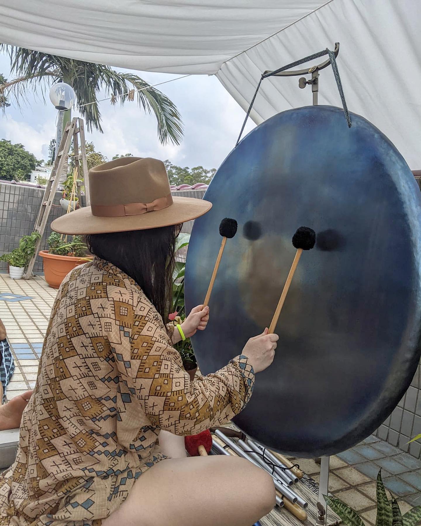 Mallet by Ollihess and its meaning for me: Paint it. Picasso had his brush. I have all of Olli's mallets. I use them to create sounds, also from his special gongs such as Wega and Sadja in 40". There are 27 other gongs from Oetken and Meinl from China hanging in the sound room. His mallets are used to create landscapes and experiences. Even an inexperienced gong player can usually tell the difference. A good mallet should nestle in the hand and become a connection with the sound worker's arm. The weight is also important. Everything is given here. A perfect unit. May the sound be with you.